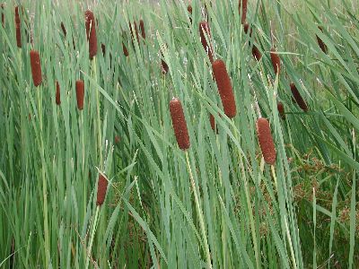 Cattail: There are many species of cattails growing wild throughout the US. Some may grow up to 6-8 feet tall. Often the Dwarf Cattail, with a maximum height of 3 feet, is used in ponds as a background plant. Cattails require full sun to grow well and since they spread by rapidly by creeping root stalks and seeds, it is best to grow them in containers.