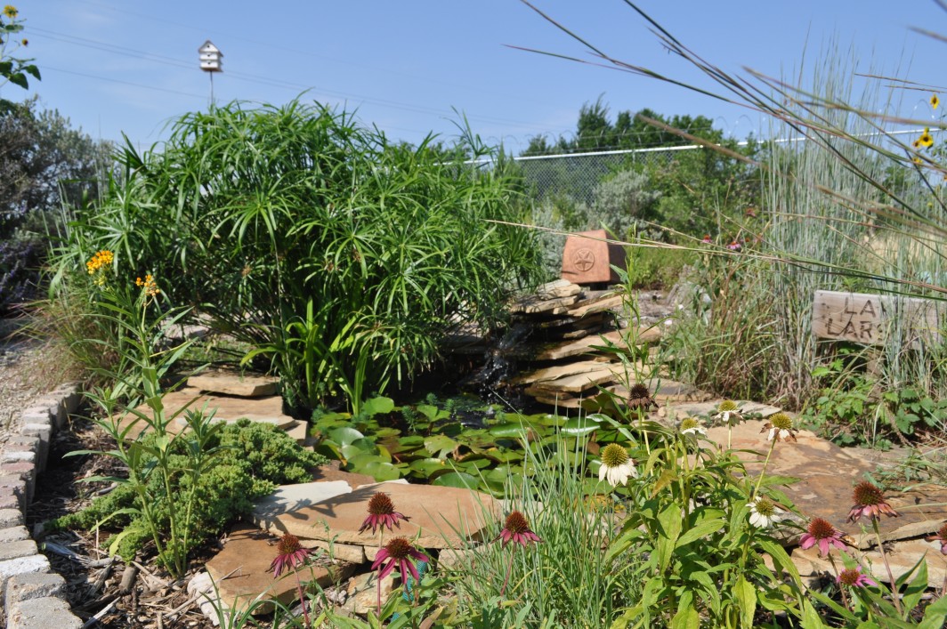 Pictures from our garden by Ann and thanks to Tamu Aquatic Plant ID for Parrot’s Feather, Frogbit, and Cattail.