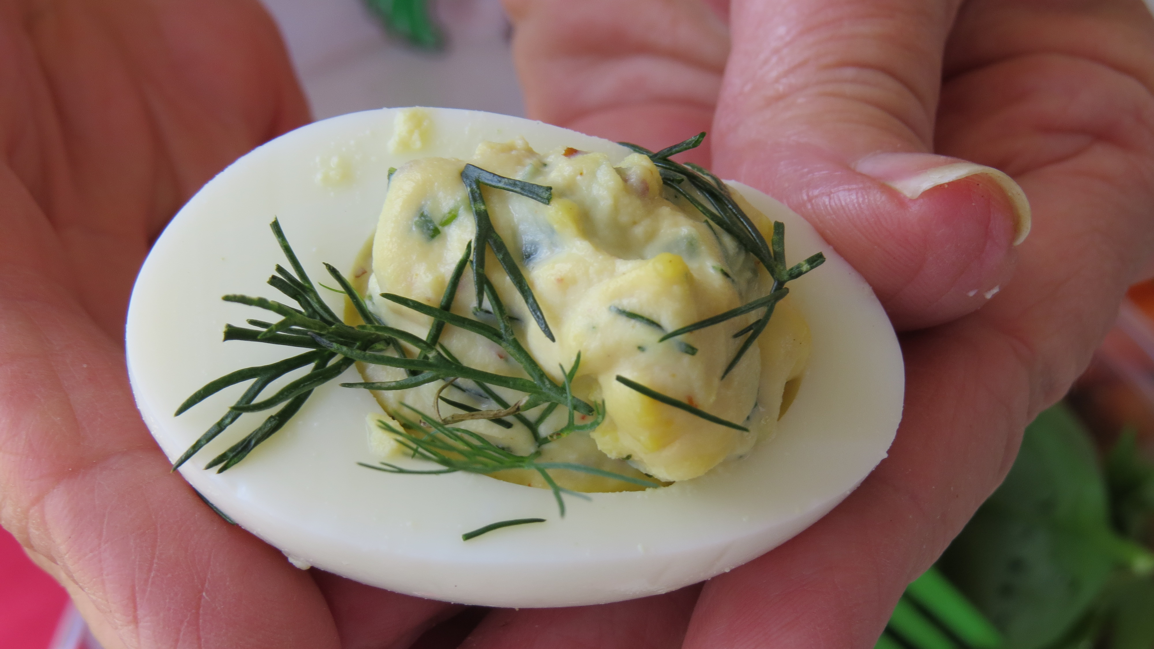 Guests opened their picnic lunches to find a carefully packed feast wrapped in ladybug cellophane. They enjoyed Arugula Rocket Salad with Nasturtium blossoms and Raspberry Vinaigrette, Copper Pennies, deviled eggs with candied bacon, crostini with Every Herb Pesto, Lemon Bars and Cupcake Brownies. What a picture perfect day for a picnic. Come back soon, fellow Master Gardeners!