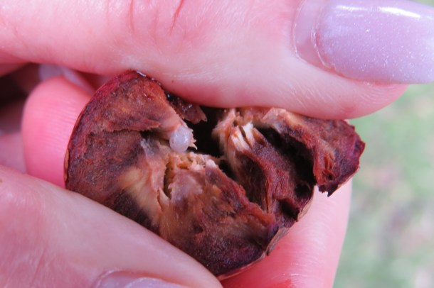 The galls are hard to see until they fall to the ground. If this happens before the creature is mature the gall can be cut open to reveal the little larvae. Of course, then it will not become a wasp—but this might be ok—in the interest of science.