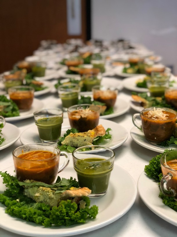 Ready to plate! Thanks Evelyn, Patty, Abbe, Sarah, Ann, Linda, and other Master Gardeners!