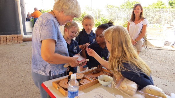 From the beginning, Carolyn supported our garden in many ways. She brought her chickens when we had children visiting the garden on field trips. She also taught our visiting kids a wonderful little class on cotton. She brought a loom and let the kids weave. She taught them about growing cotton as well as it’s social aspects.