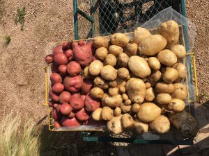 The potatoes were harvested late spring. These were Red Norland and Yukon Gold. I had good luck fooling the borers this year.
