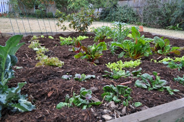 Last year our family chomped through lettuce, spinach, Swiss chard and broccoli out of this little garden fall through spring.