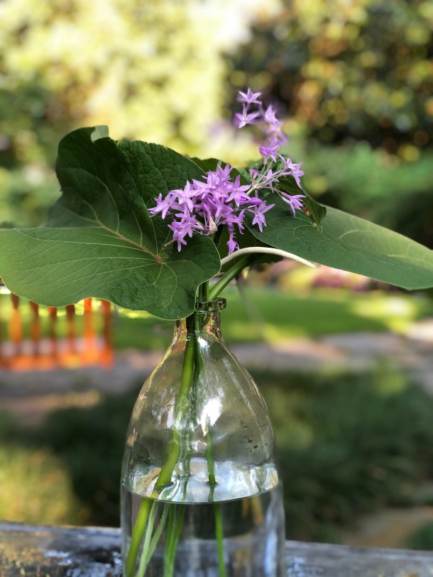 Hoja Santa, and society garlic blossoms play a peaceful rhythm.