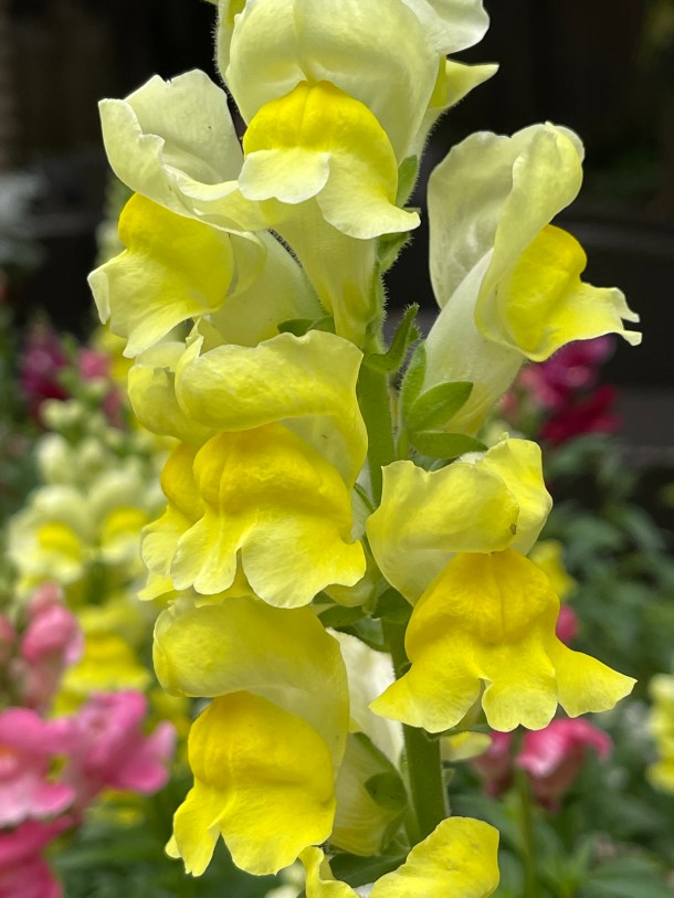Snapdragons will always have a place in my garden, but it wasn’t until recently that I learned the answer to a perplexing question. Why are they called snapdragons, anyway? Thanks to “the spruce” for this rather comical but accurate answer. ‘The common name derives from the shape of the individual flower heads, which resemble the snout of a dragon, and which even open and close in a snapping motion, as often happens when pollinators open the jaw to reach the pollen’.