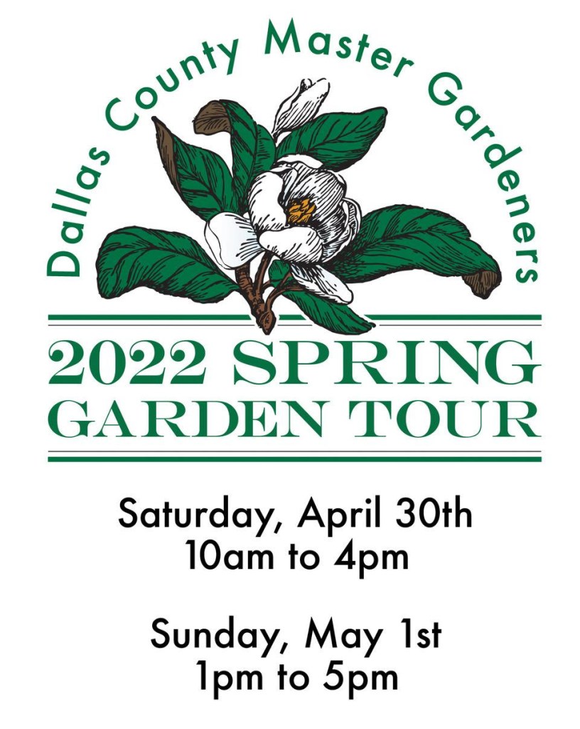 Tickets for the Dallas County Master Gardener Association (DCMGA) 2022 Spring Garden Tour are now on sale! They can be purchased for $15 through 6:00 pm on Friday, April 29th on the DCMGA website or online for $20 on the days of the Tour or at any of the gardens. Your ticket is good for either or both days, Saturday, April 30 from 10 am to 4 pm and Sunday, May 1 from 1 to 5 pm. There are six residential gardens and one school garden on the Tour, all located north of I-635 between Carrollton/Farmers Branch and Richardson. New this year, all the gardens will be PlantTAGG® -enabled, allowing tour visitors to access the most current, research-based horticultural information about featured plants using their cell phones. There will also be a variety of educational programs presented in the gardens.