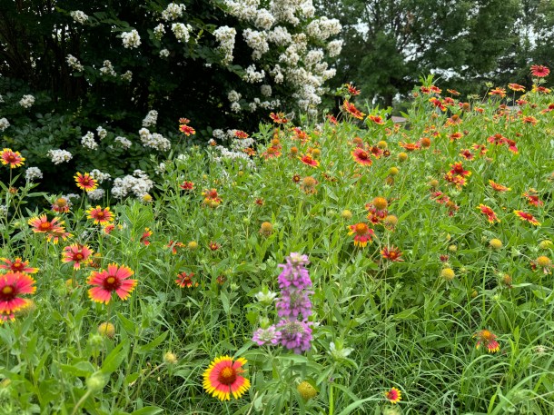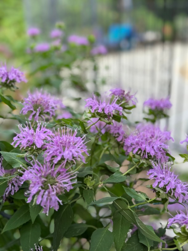 Oh, I so enjoy the colors and flowers that bloom during the early summer and one that I’m enjoying of late is bee balm. Its magenta flowers atop a tall stalk are a feast for pollinators. In the wildflower area of Raincatchers, a purple rocket-like plant is putting on a show – Bee balm? It looks nothing like the other, but I recall it being bee balm too. Can it be? And then there’s Lemon Balm with its bushy habit and ability to travel readily. Looks like it’s time to clear up this mystery—