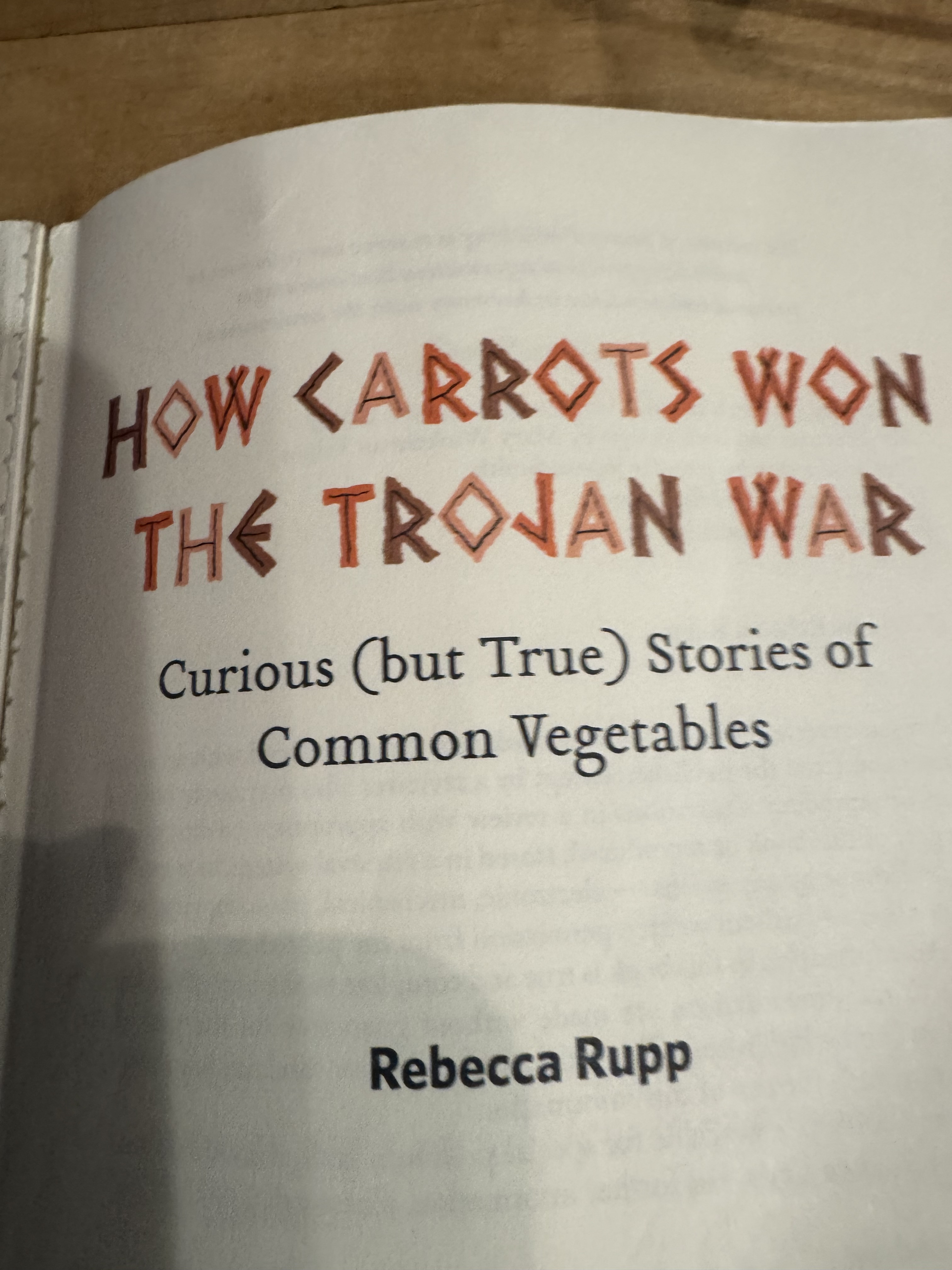 Book reviews can’t go on too long–its hard to stop because there is so much covered in How Carrots Won the Trojan war.  You will be amazed as you read each of the 21 chapters–vegetables are clearly  amazing and how we come to have them is something rarely discussed–and it should be–we benefit from so much work and knowledge gained over in some cases thousands of years.