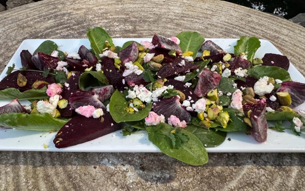 Our recipe for the month is a garden-inspired celebration of late winter to early spring selections. It’s easy to assemble and can be personalized according to your preferences. Substitutes might include grapefruit, navel oranges or mango as a fruit option. Walnuts, pecans or pumpkin seeds instead of pistachios. Goat cheese crumbles could replace the feta and, maybe, why not toss in some blueberries for a touch of blue!
