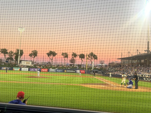 For this trip, every evening brought different opportunities. Initially, the interest was the sunset and ever changing ground and sky in the plane and on the ground;  the second day  found us at the Botanical Garden of the Desert, which softened even the most prickly cactus, and lastly, golden hour was observed at a baseball game complete with palm trees and a pink and orange sky.  Each different, each unique, and mesmerizing.
