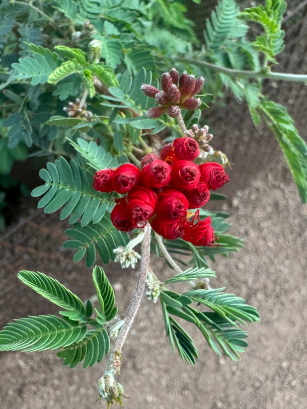 The Desert Botanical Garden was in bloom around every corner.  Here are a few of the blooms and interesting specimens.  The red rosettes of baja fairy duster, Calliandra Californica, were beautiful against the feathery fernlike leaves which close at night.