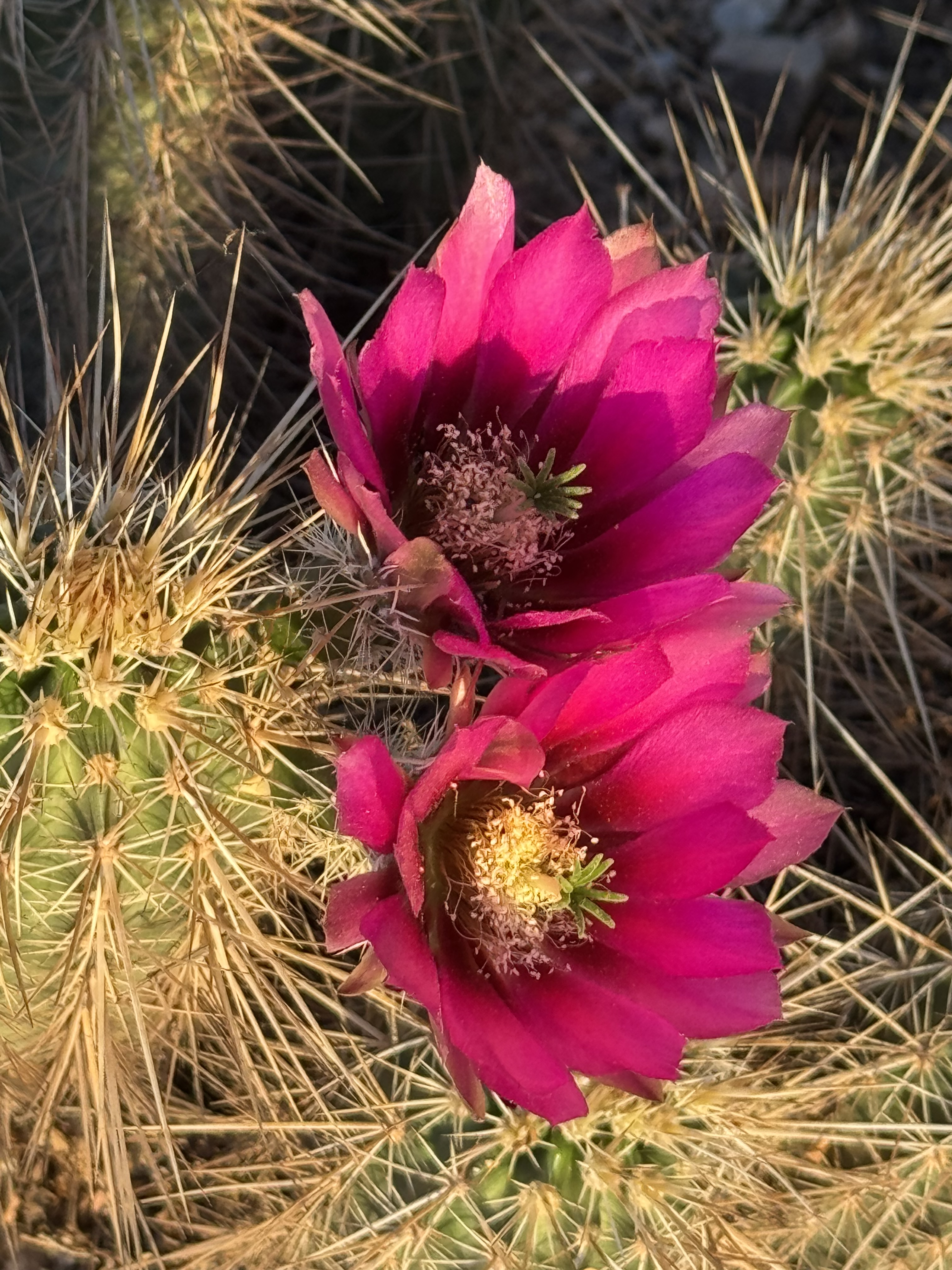 Echinocereus coccineas or Hedgehog cactus with fuchsia blooms
