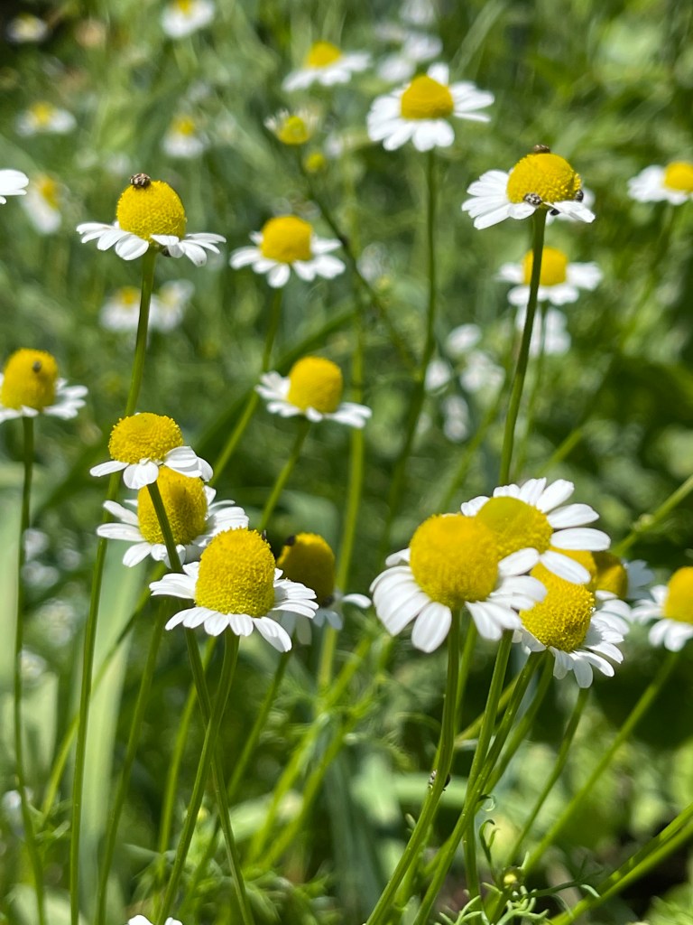 Dainty, apple scented, daisy-like spring blossoms become the perfect ingredient for brewing a cup of German chamomile tea. To make the tea, place 1 tablespoon fresh (or 1 teaspoon dried) flowers in a cup. Pour 1 cup boiling water over the top and steep for 5 minutes. Strain out the petals before drinking or using in a recipe. Let the soothing taste calm and comfort you on a crisp spring morning. Petals can also be used in salads.