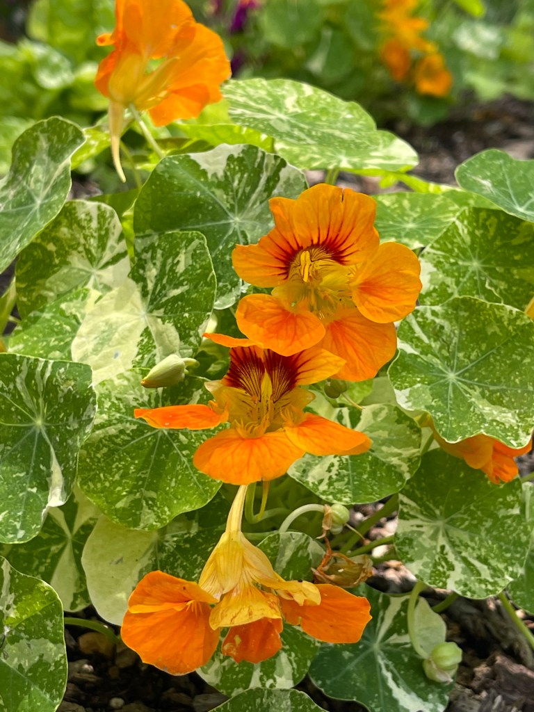 This year, the varieties we chose are ‘Lemon Gem’ and ‘Tangerine’. Master Gardener, Gail Cook, started the seeds for us in early spring. The four-to-six-inch seedlings were transplanted in May. Over the past few months, we’ve enjoyed the elegance of their petite, single, lemon and tangerine blossoms with a citrus-forward, subtly peppery flavor. Harvest the flowers just before using by separating petals from the flower base as it contains a bitter, unpleasant flavor.