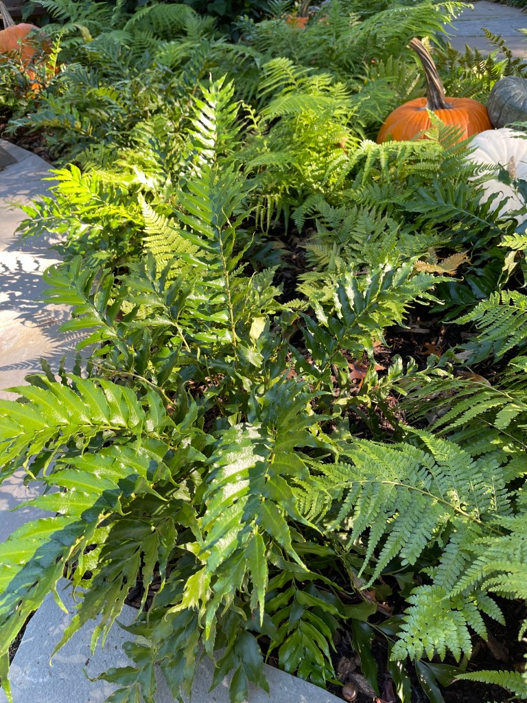 In honor of our new Co Leader, Fern Brown, it seemed very appropriate that the first non-edible introduction to the Edible Landscape Garden would be a lovely assortment of “ferns”. A “tip of the hat” to Fern for donating holly ferns from her yard to get us started.