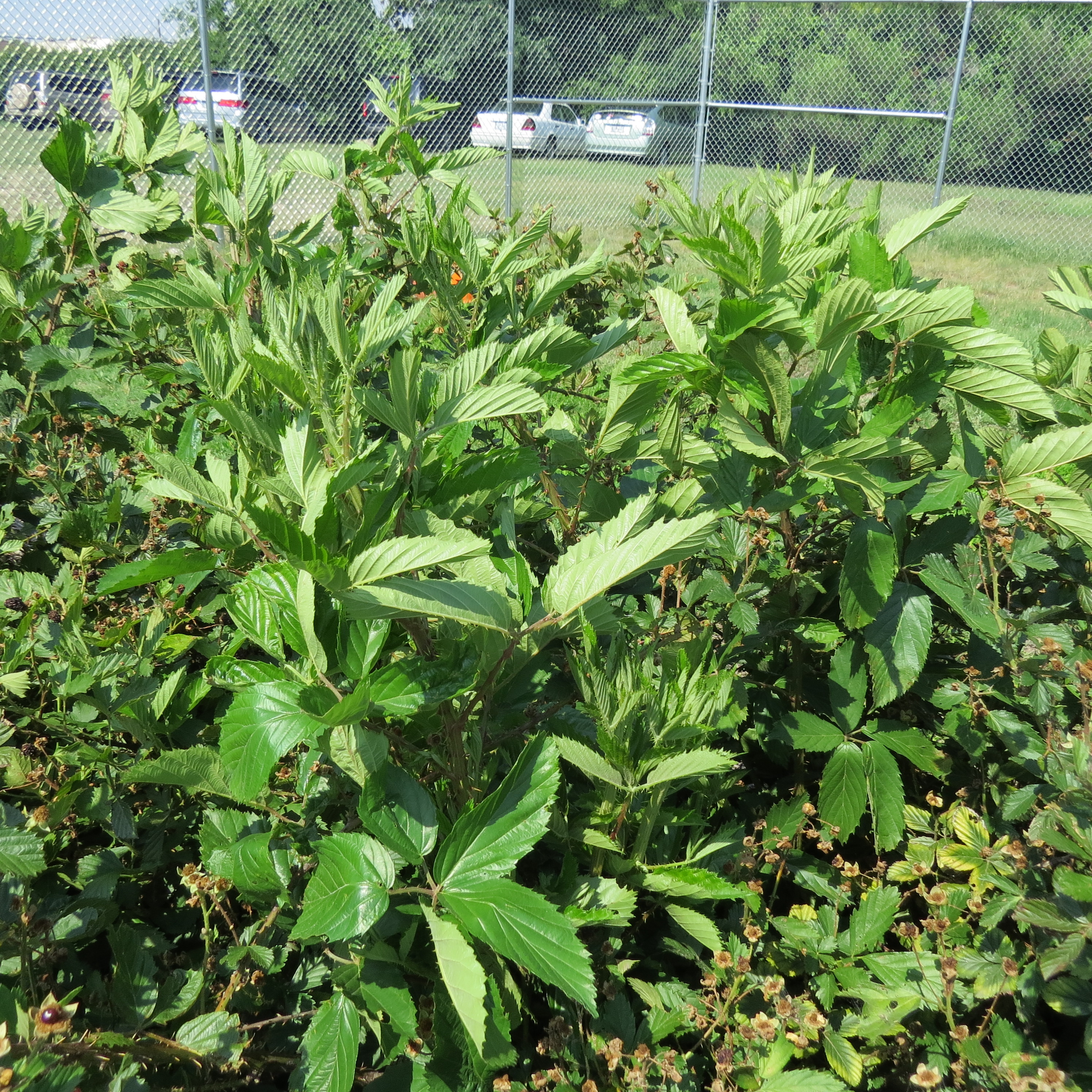 Tim planted one thornless variety, ‘Natchez,’ which in our small trial produced more than the thorned plants.  Released in 2007 from the University of Arkansas, ‘Natchez’ has firm sweet fruit and upright growth.  It ripens early and has good disease tolerance.