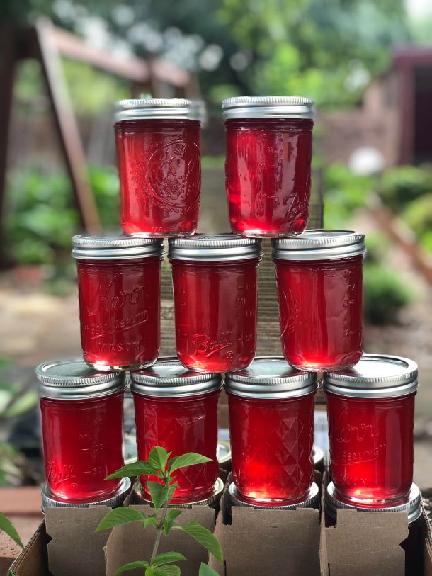 In mid-July Jon Maxwell and the Master Gardener 2020 interns picked 2 buckets of champanel grapes. Jim Dempsey (and lovely wife, Martha) took on the job of juicing the grapes and jelly-making.