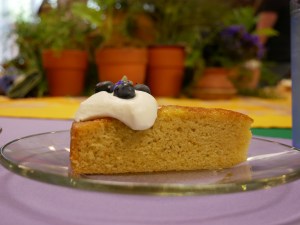 You seldom here about this intensely moist and flavorful cake served during the dessert course. We hope to change you mind. Restaurant owners, Jennifer and David Uygur shared their recipe in the Dallas Morning News. Each slice was topped with a generous dollop of lavender-infused whipped cream and a sprinkling of fresh, locally grown blueberries.