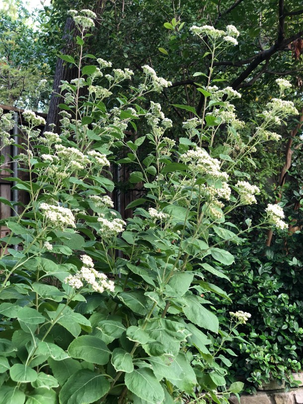 Grow It, Use It – Frostweed is a lovely perennial plant native to Texas and many other states. It is a member of the Sunflower Family. Frostweed grows from 3’-6’ and is covered with white disc-like blooms from late August until November. It is an exceptional nectar source for butterflies like Monarchs and Great Purple Hairstreaks. It grows well in dappled shade.