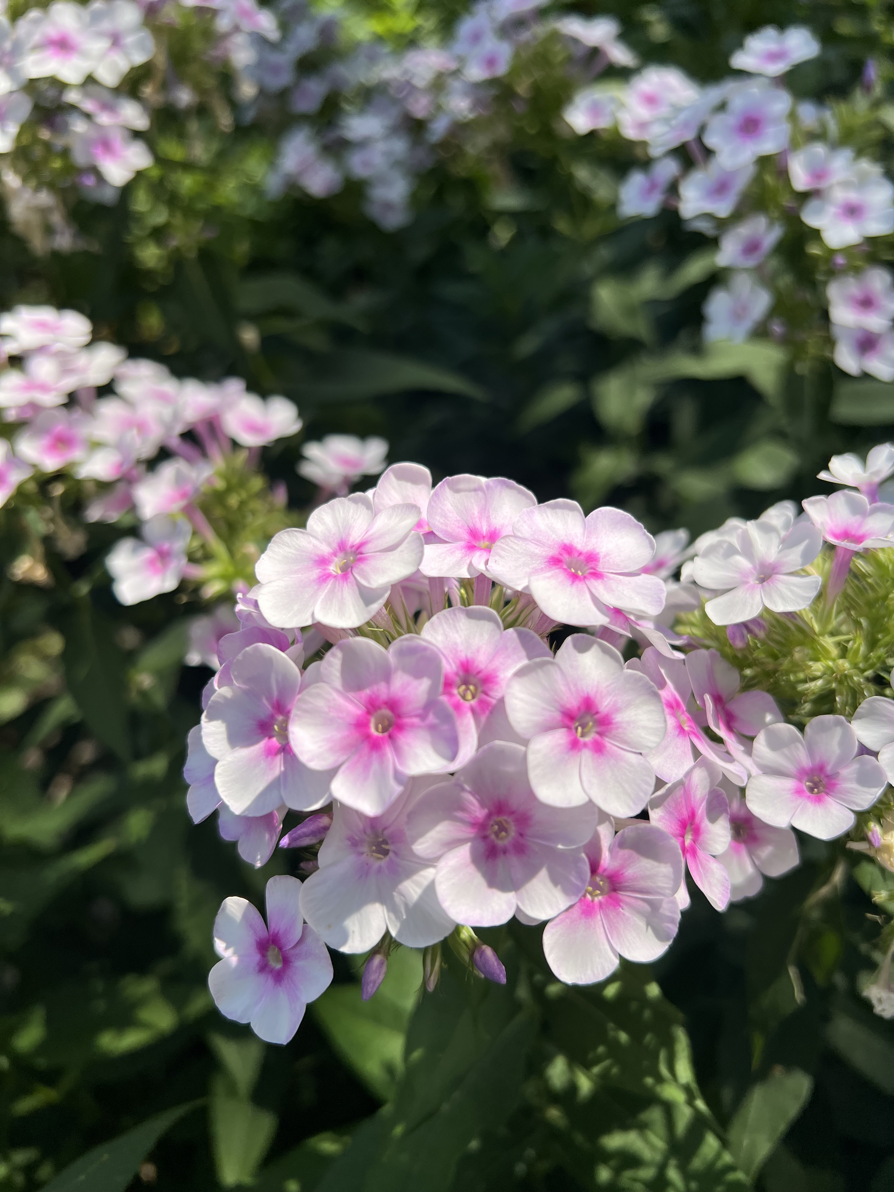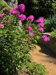 Phlox paniculata ‘Victoria’ at my house with boxwood and white Turk’s CapNeighbor’s PhloxPhlox along a garden path at Linda’sClose up, note the many tubular flowers forming a panicleRaincatcher’s Phlox ‘John Fanick’