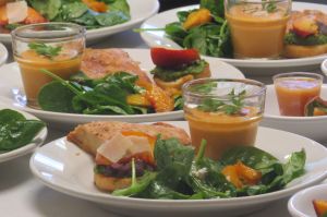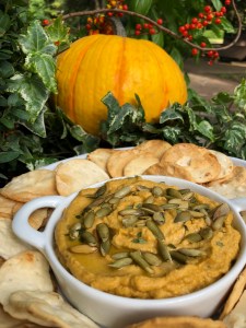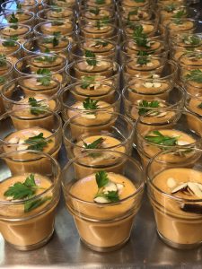 Butternut Squash-Pear Soup garnished with Parmesan and Chopped Rosemary