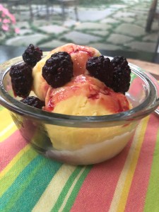 Sweet Corn Ice Cream with Blackberry Lemon Verbena Sauce