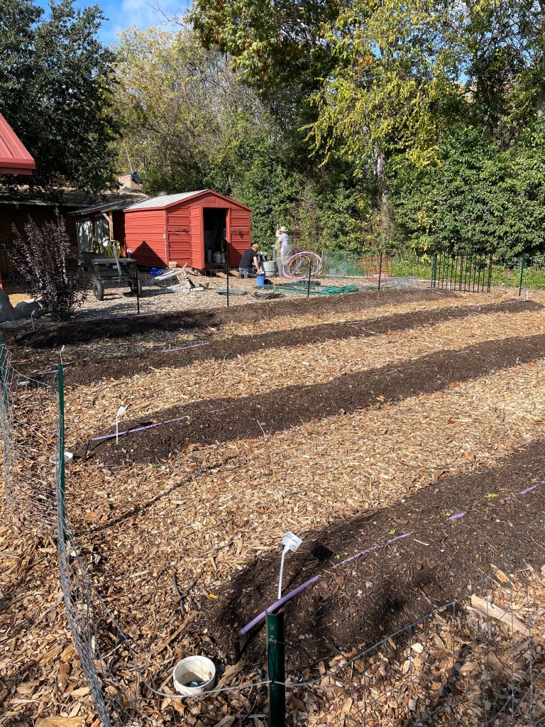The Raincatcher’s team has been busy putting in new gardens. Led by Leonard Nadalo and Beverly Allen a ridge and furrow garden was built in October with the purpose of growing food for the North Dallas Shared Ministries’ food pantry and demonstrating an alternative to raised bed gardening on our clay soil. It is aptly named The Donation Garden. One of our turf beds has also become a new veggie plot and is the home for turnips, beets, spinach and some struggling carrots.