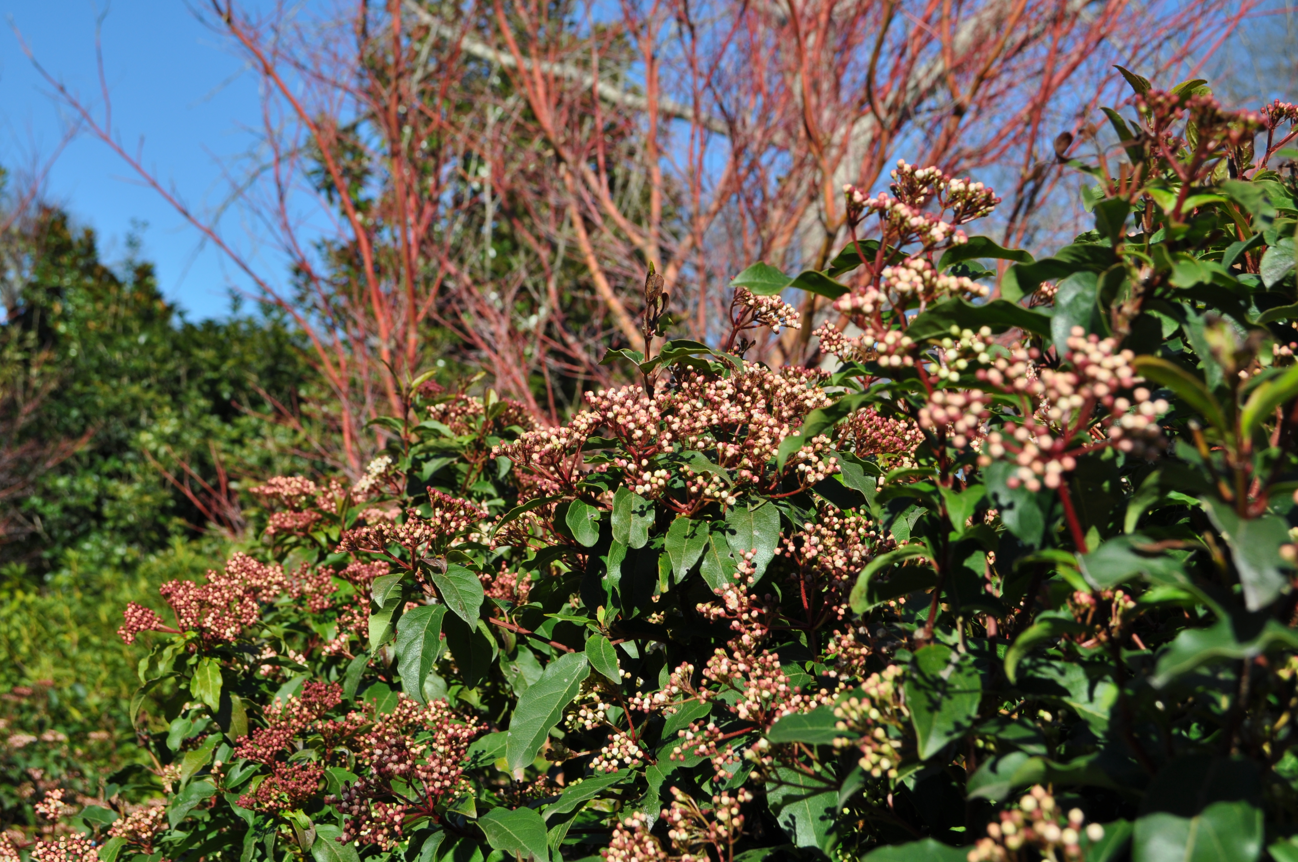The maroon leaves blended perfectly with plantings of lorapetalum and palms, pansies and cardoon at the entrance to the Arboretum.