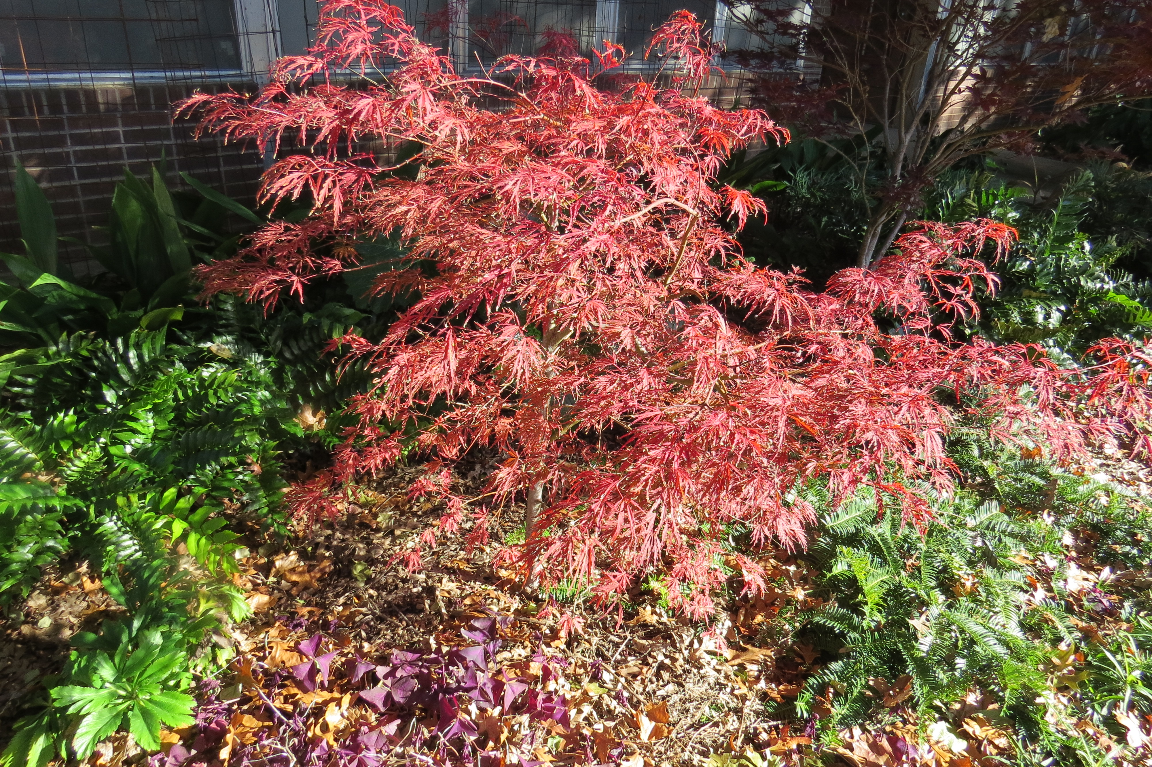 Over the years we’ve added several dwarf Japanese maples and our new favorite variety, coral bark. It is a beautiful small tree with red-coral bark on its young branches with color that intensifies in the winter.