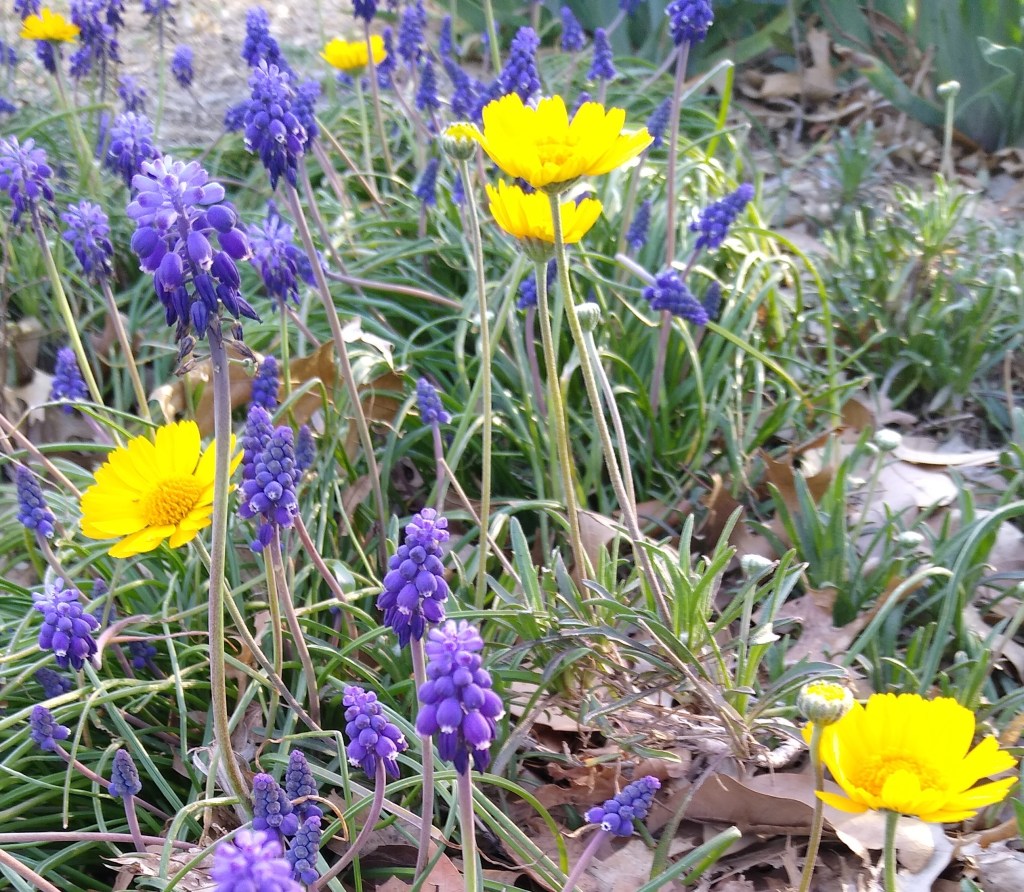 I have been growing this plant for about 10 years now and it has become my favorite plant. I have paired it with grape hyacinth and have found this to be a great combination because they both bloom in early spring. It’s a great border plant or rock garden plant and does well in full sun. It does not tolerate over watering which is a good thing in my book!!! This plant has a long taproot and does not transplant well. It spreads from seeds and does well if dug when the seedlings are small. I have been digging these tiny seedlings and will have some available at our plant sale at Raincatcher’s Garden on May 4th.