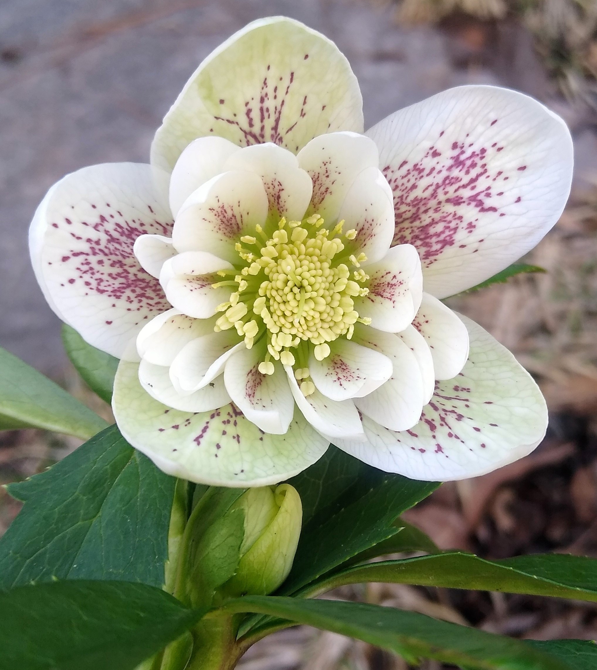 Lenten rose thrives in partial to full shade which makes it a good plant for adding color and texture to dark areas of the garden. Try planting it in small groups of 3 to 5 plants (18 to 24 inches apart) or plant along walkways and edging. As you can see from the photo, it looks great planted alongside purple oxalis and holly fern. It is best to keep the soil moist but it can tolerate drier conditions once established.