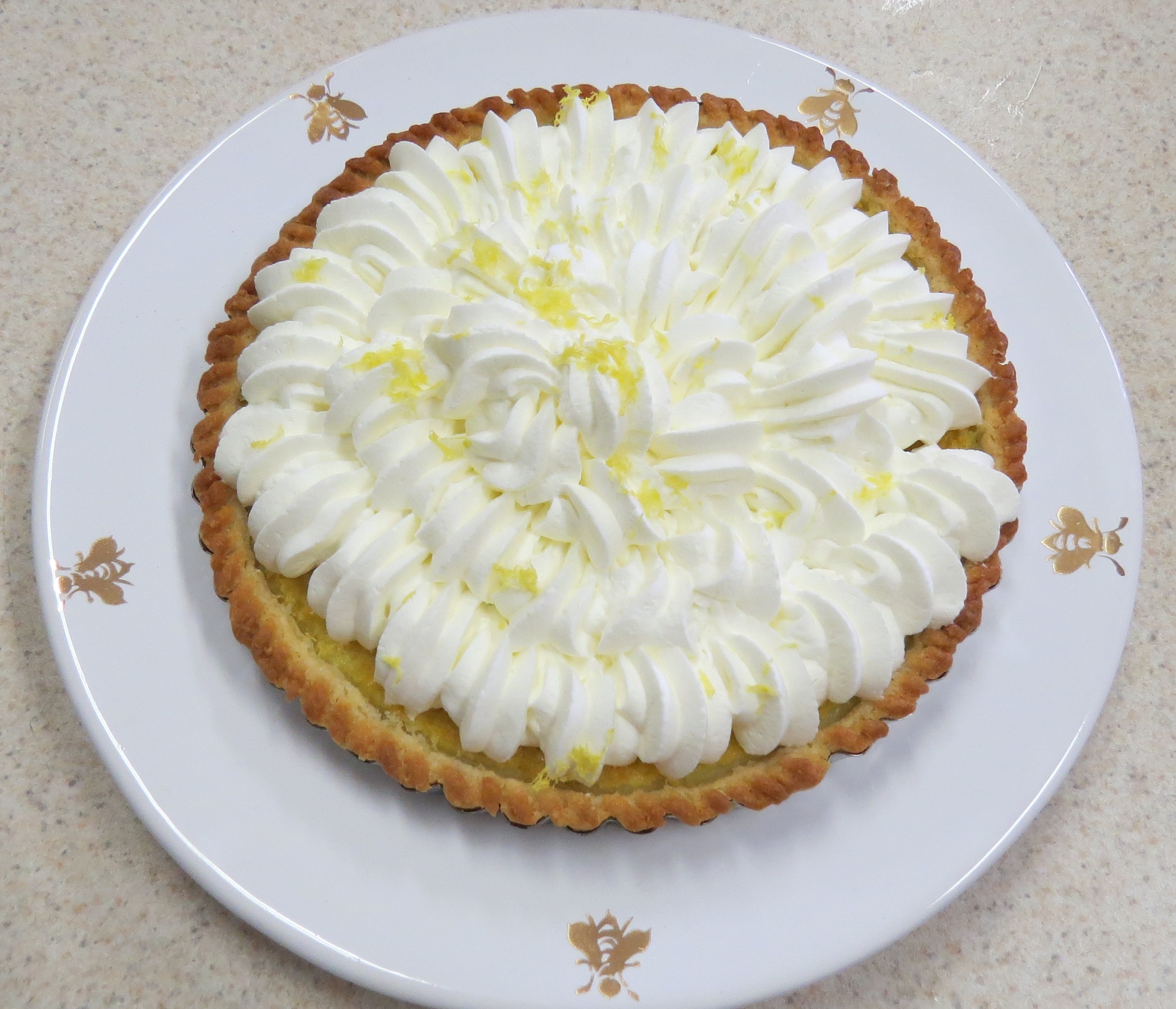Decorate cooled tart with an abundance of whipped cream in a decorative pattern, sprinkle with lemon zest. Chill several hours or overnight before serving.