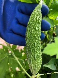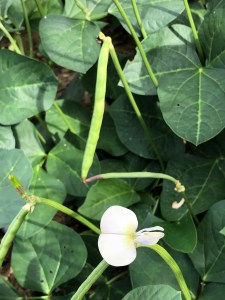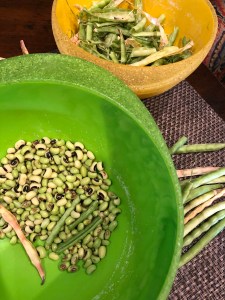 The black eyed peas can also be harvested as immature pods and be prepared like green beans. Traditional green beans can not tolerate the heat and tend to get rust, but the black eyed peas and noodle beans are disease free.